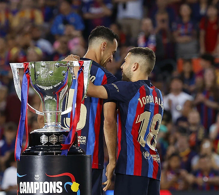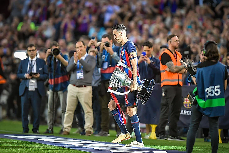 Бускетс торжественно вынес чемпионский кубок – они с Жорди были опытной опорой в составе.