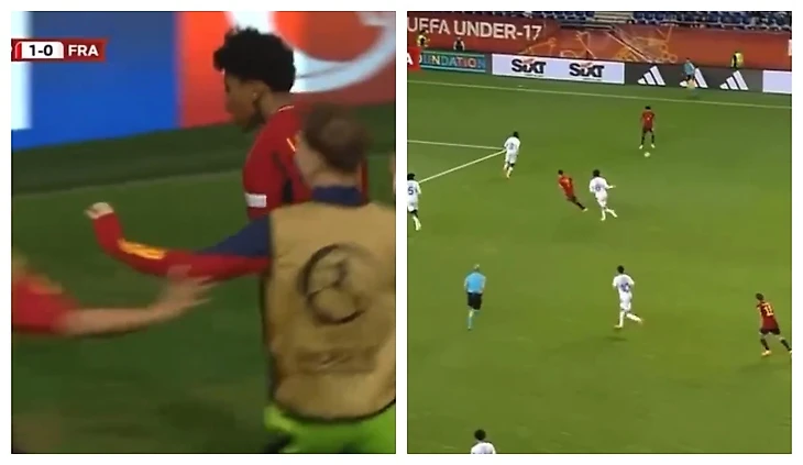 Лмин Ямаль, недавно подписавший контракт с «Барселоной» до 2026 года феерит в Венгрии на юношеском чемпионате Европы - недавно от него пострадала Сербия, а теперь гол-красавец в свои ворота получила сборная Франции.