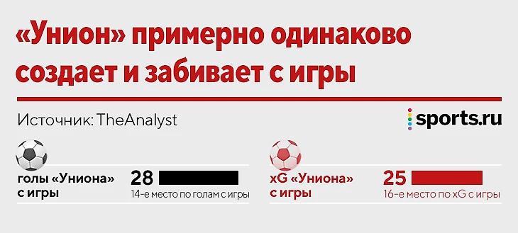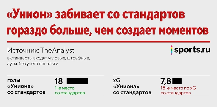 С игры «Унион» забивает почти вровень с xG. А вот на стандартах…