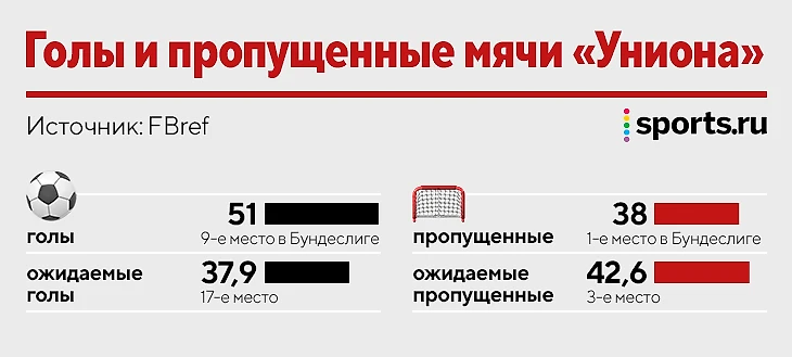 С сезона-2017/18, когда Soccerment начал обрабатывать статистику, в Бундеслиге никто даже близко не приблизился к результату «Униона».