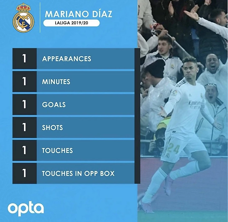 Болельщики отыскали картинку, которую после матча против «Барселоны» сезона-2019/2020 сделала Opta. Красноречивое подведение итогов карьеры Мариано Диаса в «Мадриде».