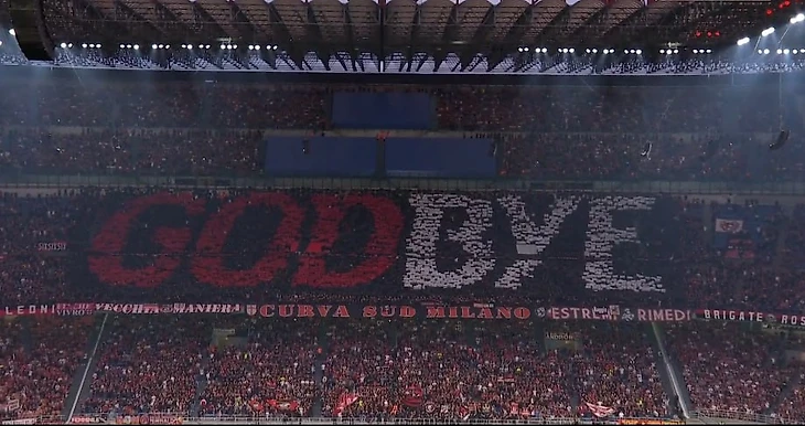 «Милан» придумал изящный слоган для прощания – GodBye, Zlatan. Получается и Good Bye («Прощай»), и God Bye («Пока, Бог») – вполне в духе Ибры. Болельщики подхватили и выложили на трибуне огромную мозаику.