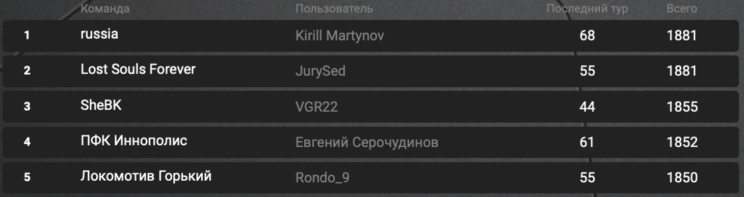 В РПЛ у нас первые два места набрали одинаковое количество очков. В данном случае мы объявляем победителями обоих игроков! Оба игрока получают свои звезды и бейджи.