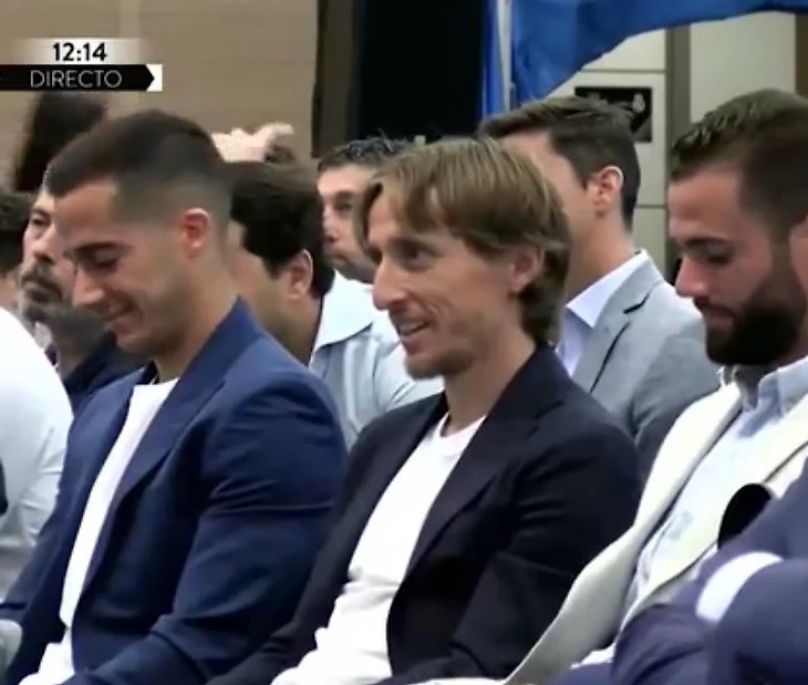 Кстати, реакция Модрича на оговорку попала на камеру – он тоже улыбнулся.