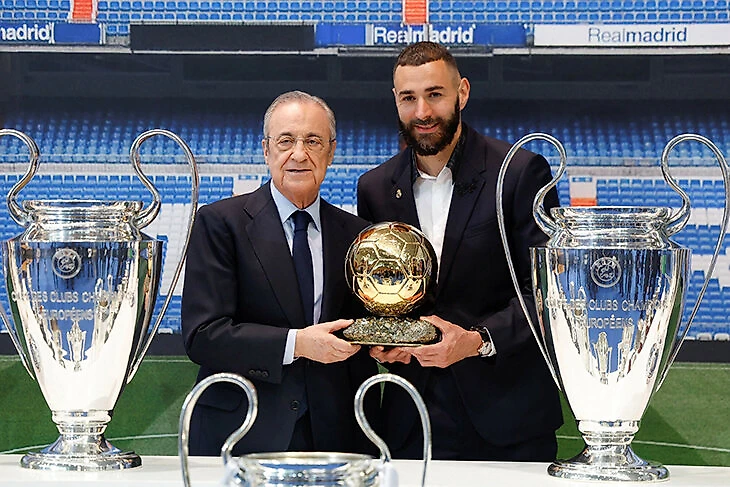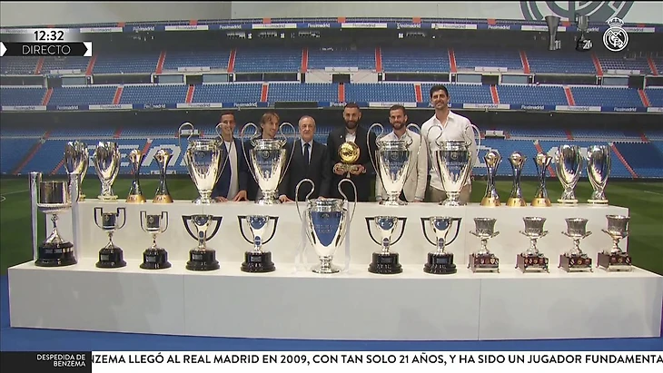 Бензема сфотографировался с президентом и другими игроками клуба вместе с «ЗМ» и бесчисленными кубками ЛЧ.