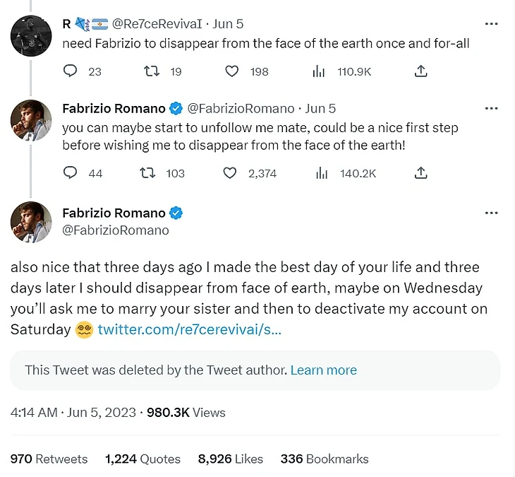 Гнев Фабрицио Романо. Инсайдера взбесил твит фаната, и он лично ответил ему: «Может, попросишь меня жениться на твоей сестре?»
