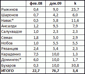 Итоги года каждый болельщик подводит для себя сам. Кто-то в интернет-записях, кто-то за праздничным столом, а кто-то просто у себя в голове. Блог Brick Top предоставил дискуссионную заметку о болельщиках-флюгерах. Случай из жизни от Александра Граировича: «Общался сегодня с одним знакомым. Во время чемпионата Европы он так восхищался сборной, так проникновенно выражал свой восторг, что его слова западали в душу каждому. Тогда он обожал Аршавина и называл его гением, а сегодня Аршавин � самый непрофессиональный игрок. Павлюченко он сватал в «Реал» и готов был драться с каждым за малейшее возражение, а сейчас его пренебрежению и неуважению нет предела. Это не частный пример. Уверен, каждый может рассказать о таких болельщиках. Зато я знаю, что сделаю. После первой же победы сборной позвоню моему знакомому. Он будет предельно радоваться успеху и еще кого-то отправлять в «реалы»� Однако я позвоню ему, чтобы сказать, что это не его победа. Что он сделал, чтобы иметь право радоваться этой победе? Нельзя отвернуться, когда плохо, а потом признаваться в любви, когда все хорошо». Впрочем, в Footblog хоть и нет подобных настроений,закрывать глаза на просчеты Хиддинка не собираются: «В том, что Хиддинк упал, сомнений нет. Он рухнул. Задача была вывести сборную на ЧМ, и он с ней не справился. Это провал. После провала нормальный профессиональный тренер уходит. Впрочем, 7 миллионов могут поменять принципы любому человеку, поэтому Хиддинк сейчас ждет � будет ли способен новый президент РФС обеспечить ему такие деньги. Не знаю, нужен ли России такой пронырливый голландец? Чувствую, как становлюсь мишенью для любителей швырять помидорами и тухлыми яйцами. И даже предвижу главный их аргумент: где гарантия, что новый тренер добьется лучших результатов? Гарантий нет никаких, как нет гарантий, что Хиддинк снова не провалится. Честно говоря, вся эта Хиддинкомания после Евро меня начинала уже доставать. Прямо бога из него сделали. Только и слышал: «Наш родной Гус», «Раз Хиддинк решил, значит правильно». Самое печальное, что он и сам поверил в свою непогрешимость и фартовость. Он и подумать не мог, что проиграет, он слишком надеялся на свою везучесть и стал больше руководствоваться русским авось». А вот Источник изобилия и вовсе переживает по поводу судьбы футбола в России. Ясно, что это навеяно результатами сборной России и недавней статьей о телерейтингах, но пессимизм автора все-таки перевешивает: «Вы поймите, вот мы сидим на спортивном сайте, что-то из себя изображаем, блоги ведем, читаем, комментируем, интересуемся, футбик смотрим. А за пределами этого сайта спорт никому даром не сдался. Вы читали блог про телерейтинги? Футбол вообще никто не смотрит, он рядом не стоит с сериалами и прочей мурой. И через пару лет этот непопулярный футбол уберут с телевидения вообще, и мы все как миленькие поставим себе зеленые тарелочки. Мы без футбола не можем, что поделать? И мы еще сильнее отдалимся от остальной России, которая уже который год смотрит «Кармелиту». Нефутбольная у нас страна. Да и станете ли вы, уважаемые подписчики, любить нашу игру меньше, если кроме вас никто ей интересоваться не будет?» Но давайте-ка отвлечемся от дурных мыслей вместе с Телевизором 3.0 и вместе попробуем догадаться, зачем Лионель Месси устроил скандал на награждении ФИФА: Блог В одно касание в одн