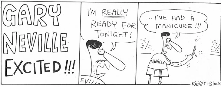 «Гари Невилл взвинчен: «К сегодняшнему матчу я готов на все сто! Я сделал себе маникюр!!!».