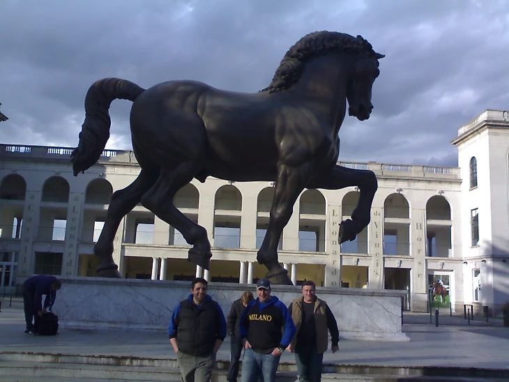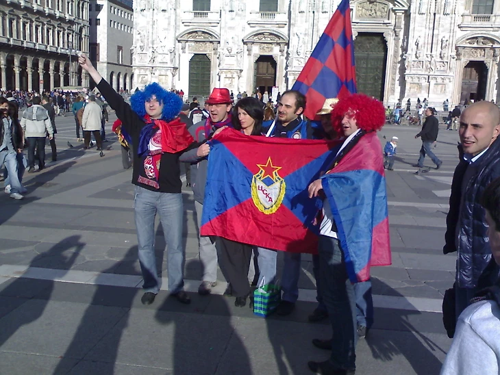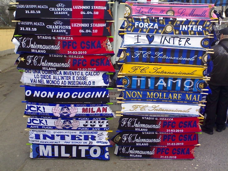 А ведь день начинался вполне миловидно. Солнце грело, но не пекло. По улицам колесили бабушки на велосипедах и эффектные дамы на мотоциклах � двухколесный товарищ в Милане есть, кажется, даже у младенцев. На площади Делла Скала, вблизи небезызвестного театра, тут и там сверкали перекрестные фотовспышки � внешний вид людей с буденовкой на голове, шарфом на шее и четырьмя пакетами в каждой руке выдавал их национальность. За три часа до матча на площади Дуомо начались ритуальные братания болельщиков противоборствующих команд. Позабыв о пристрастиях, они обменивались атрибутикой и фотографировались вперемежку. Попробуйте-ка отличить, кто есть кто в этом кадре. Тропинка, ведущая к стадиону, за два часа до игры усеялась спекулянтами. - Бильетти! Тикетс! Бильетти! � за четверть часа ходьбы эти звонкие возгласы крепко засели в голове. Спекулянты делились на два клана: одни заговорщицки косили взгляд и прятали руки в карманы (повсюду, как-никак, карабинеры), другие, особо не парясь насчет своей легитимности, использовали горсть билетов в качестве веера. На подступах к «Джузеппе Меацца» я на пару минут заскочил на ипподром. Оттуда веяло чем-то до боли родным.