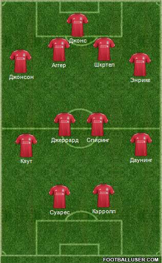 Ливерпуль (4-4-2): Джонс, Шкртел, Аггер, Джонсон, Энрике, Джеррард, Спиринг, Даунинг, Кяут, Кэрролл, Суарес.