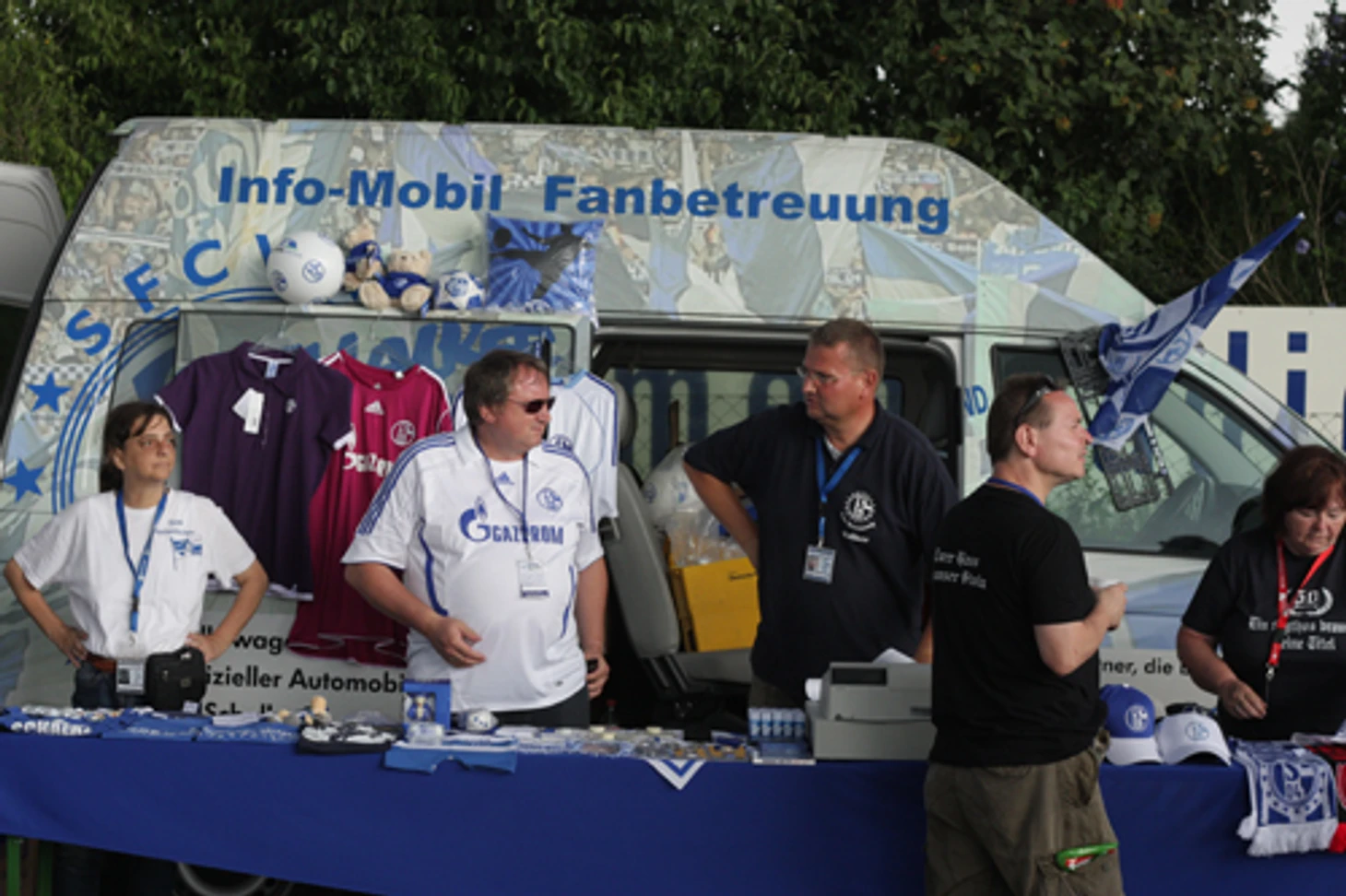 О том, что «Анжи» играет с командой посерьезнее, чем «Баник» или «Комерсиаль», кричит и территория перед миниатюрным стадионом – она буквально устлана машинами с немецкими номерами. В десяти метрах от входа на трибуну припарковался передвижной магазин атрибутики «Шальке».