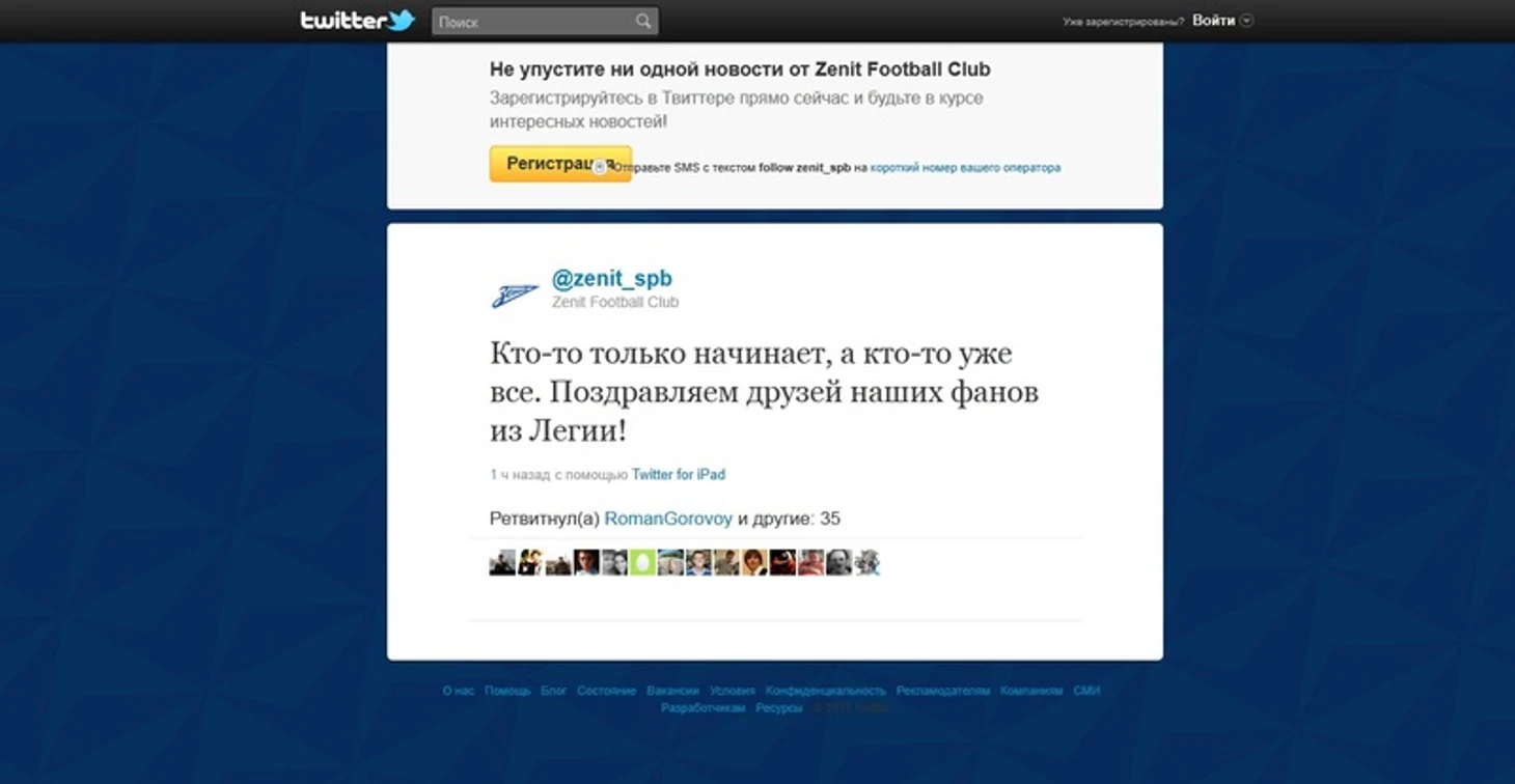 1. Твиттер «Зенита» – «Легии»