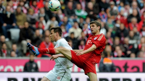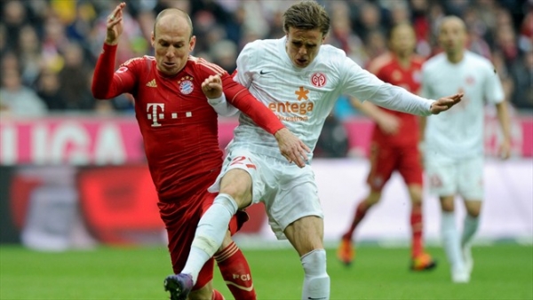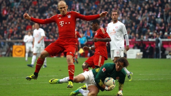 В ответ Роббен ворвался в чужую штрафную, уткнулся в корпус Нико Мюллера и упал. Мяч отлетел к Оличу, заработавшему для своей команды угловой. Алаба подал, Олич головой продлил, но не было понятно, на кого. Момент остался моментом — не более. Впрочем, неточными передачами и навесами грешили и гости тоже. Мюнхенцы владели мячом, изредка позволяя сопернику проводить контратаки. Под занавес первой половины мюнхенцы имели еще два неплохих момента. Сначала выстрел Анатолия Тимощука пришелся в штангу, а чуть позже Ивица Олич не смог эффектно перебросить Хайнца Мюллера.