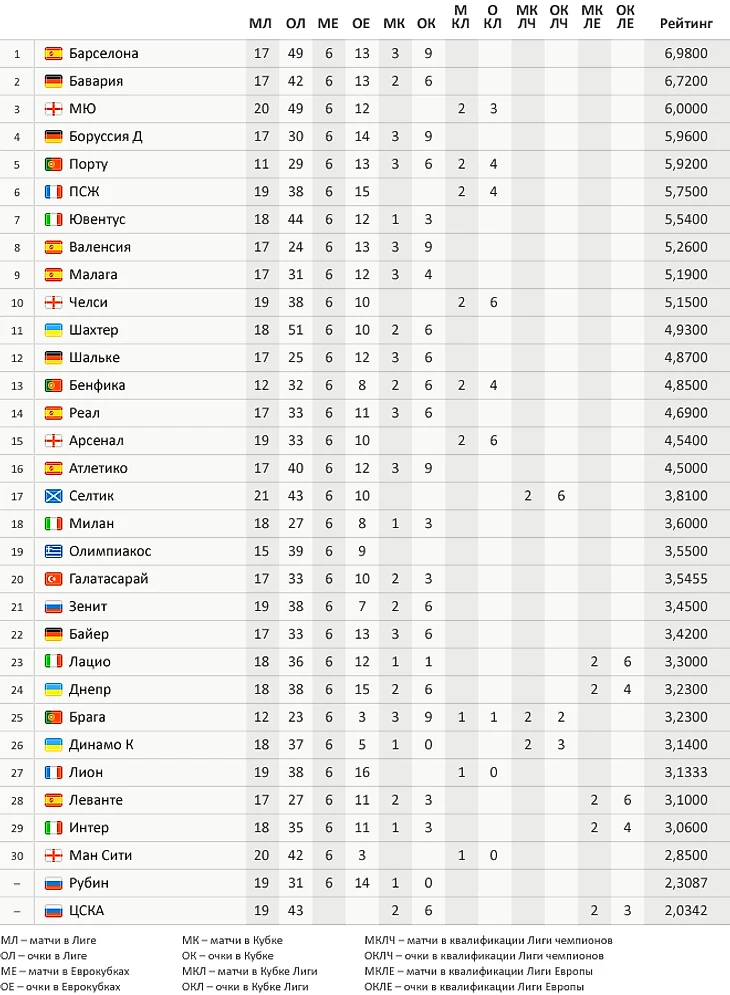 Несмотря на все неожиданности декабрьского топа, с результатами общего зачета вряд ли кто-то будет спорить: «Барселона» и «Бавария» более чем заслуженно остаются лучшими командами Европы, да и третье место «Манчестер Юнайтед» после двух подряд сухих матчей в премьер-лиге не должно вызвать бурных протестов.