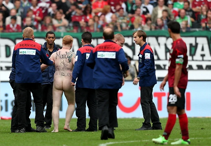 Давненько чемпионат Германии не баловали своим присутствием люди в костюмах Адама и Евы. По всей видимости, до Ганновера добрался самый настойчивый и терпеливый. Несмотря на все старания мужчины, игра «96-х» и «Майнца» зрителям запомнится больше. Там, по крайней мере, было на что посмотреть.