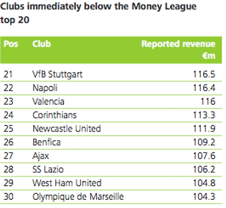 Особое внимание уделено прогрессу клубов из чемпионатов, не входящих в топ-5 и не имеющих дел с огромными рынками. Например, «Галатасарай» стал 16-м в рейтинге с доходами в размере 157 миллионов евро, а «Фенербахче» – 18-м. Как утверждает Deloitte, здесь сказывается размер активной аудитории (например, «Галатасарай» и «Фенербахче» занимают третье и шестое место по числу подписчиков в твиттере среди всех клубов этого рейтинга).