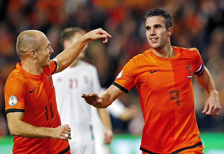Мартен Стекеленбург, Бруно Мартинс Инди, Дарил Янмат, Стефан де Врей, Рон Влар, Дэйли Блинд, Джонатан де Гузман, Кевин Стротман, Джермейн Ленс, Уэсли Снейдер, Рафаэл ван дер Варт, Арьен Роббен, Робин ван Перси.