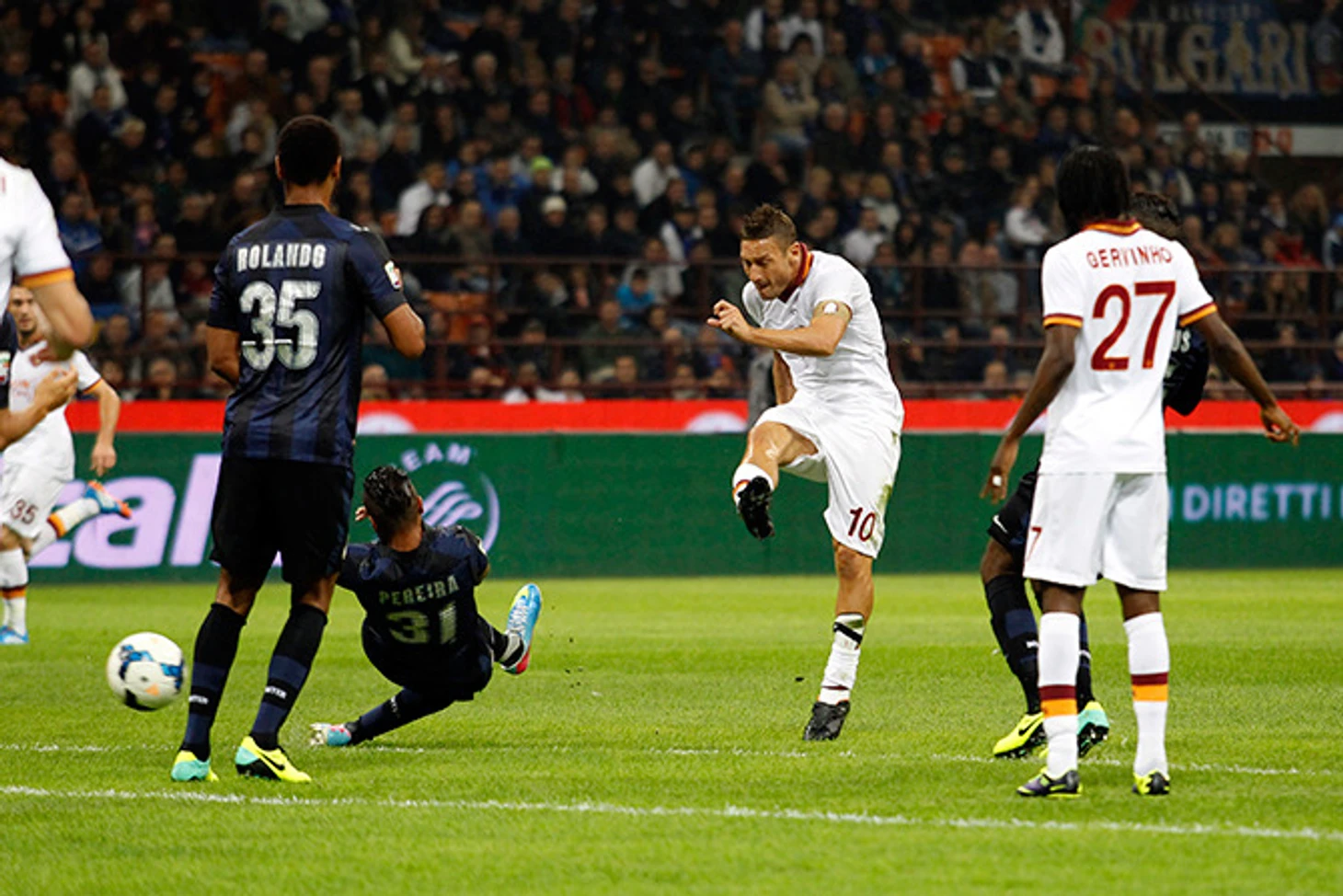 «Рома» в этом сезоне непобедима дома, выиграла на «Олимпико» 10 матчей из 12 с разницей мячей 30-2. Весьма впечатляет, но чтобы удержаться в погоне за «Юве», им нужно еще больше. С учетом свежих римских травм Додо, Майкона, Тотти и Жервиньо, «волкам» будет сложно остаться такой же злой и кусачей стаей, хотя с наличием Наингголана, Пьянича и прочих универсальных солдат, Руди Гарсия может безбоязненно комплектовать состав с прицелом на разгром врага. Впрочем, и Мадзарри располагает неплохим выбором. Эрнанес добавил управляемости в центре, выздоровевший Милито создал бронебойный тандем с Паласио в атаке, а рабочие фланги Нагатомо и Жонатан растягивают ее во всю ширь поля. И «нерадзурри» непременно надо использовать все козыри, чтобы побеждать – не только ради закрепления в еврозоне. Из 6 прошлых встреч с «Интером», «Рома» выиграла 5 – не пришла ли пора поквитаться?