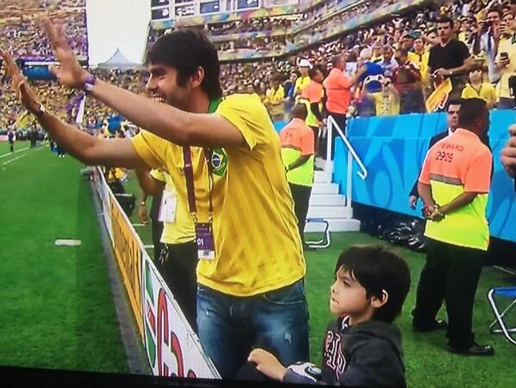 23.55 Прекрасный кадр: Кака, не попавший в заявку на чемпионат мира, и его сын на бровке «Арены Коринтианс».