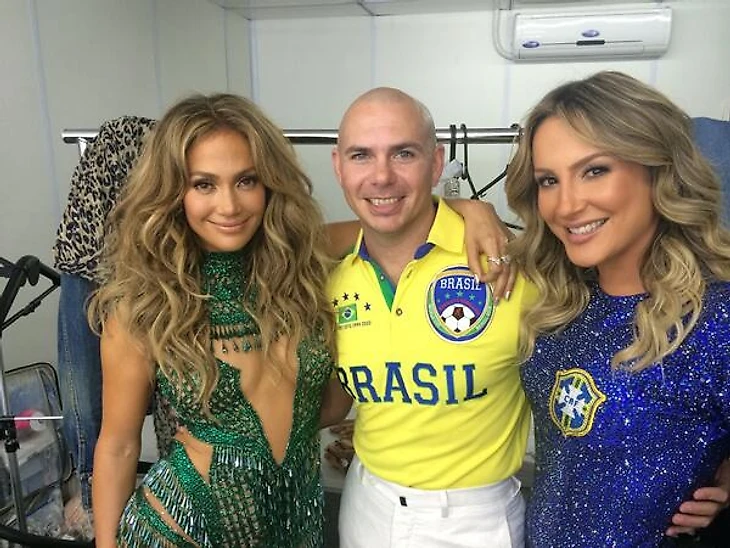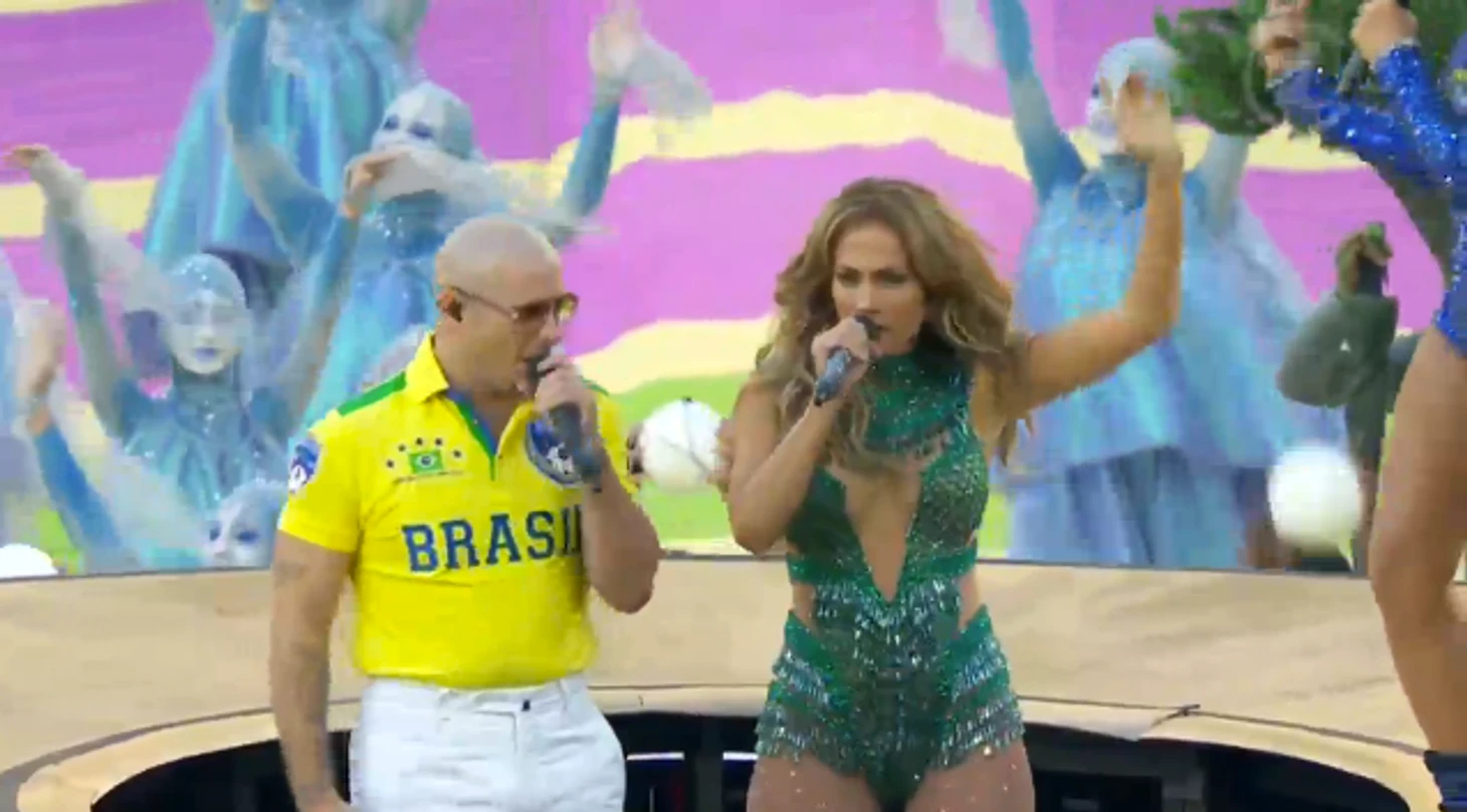22.37 Внезапно большой мяч в центре поля, на котором по ходу всей церемонии мелькала анимация, раскрылся. Снизу, как на лифте, на сцену поднялась певица Клаудиа Лейтте. А уже за ней – Дженнифер Лопес и Pitbull.