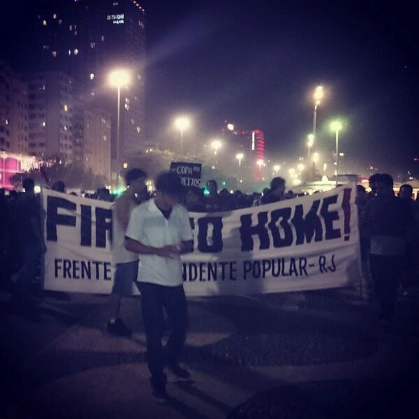 02.45 Сложно в это поверить, но не все жители Бразилии смотрели матч с Хорватией. Во время игры в Рио-де-Жанейро проходила очередная акция протеста. «ФИФА, иди домой», – призывал очередной баннер.