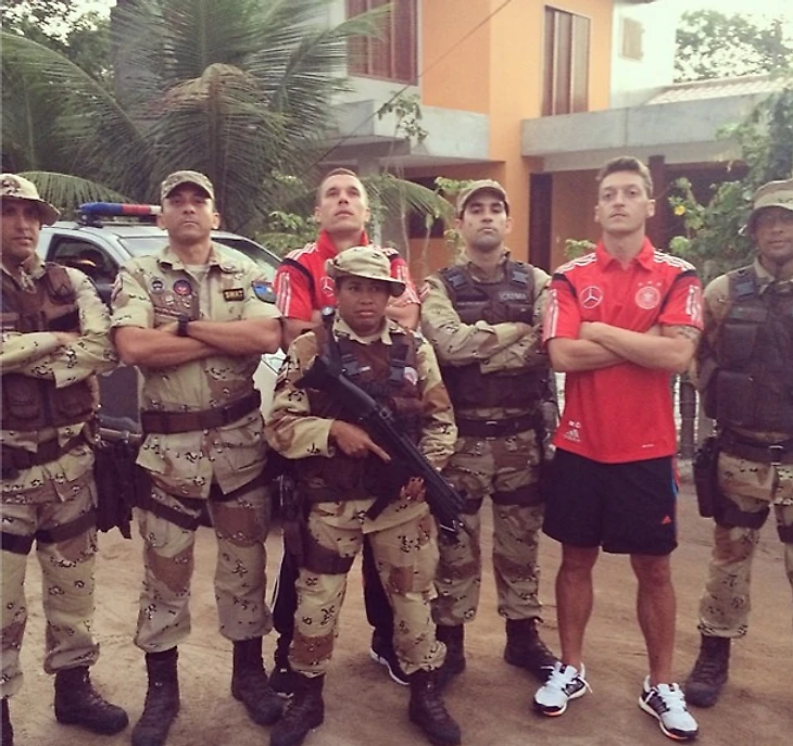 21.55 Хотя по игрокам сборной Германии никак не скажешь, что что-то идет не так. Вот атмосферная фотография с охраной.