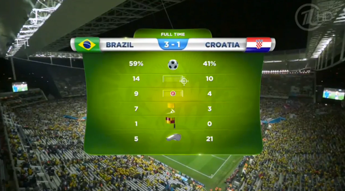 02.00 Итак, Бразилия выиграла – 3:1! Дубль Неймара, гол Оскара и автогол Марсело. Ах да, конечно, еще скандальный японский арбитр. Как вам старт ЧМ-2014?