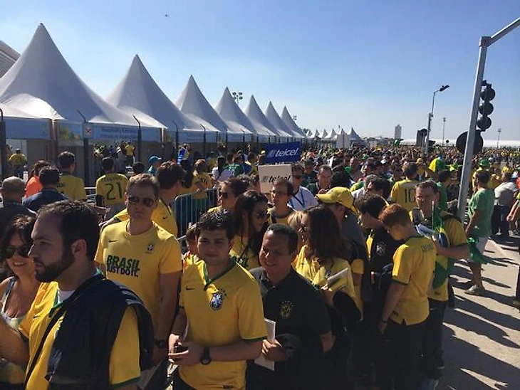 20.48 До матча еще много времени, но у стадиона уже тесно. Хорваты и бразильцы даже обнимаются.