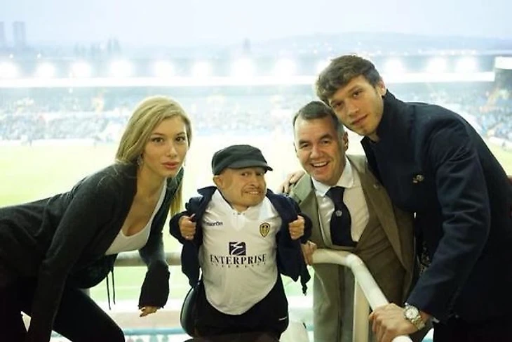 13. Человека в центре вы могли видеть в фильме про Остина Пауэрса. владелец болельщик Это актер Верн Тройер, он же Мини-Мы. Слева – Элеонора Челлино, дочь Массимо. И это опять злополучный «Лидс».