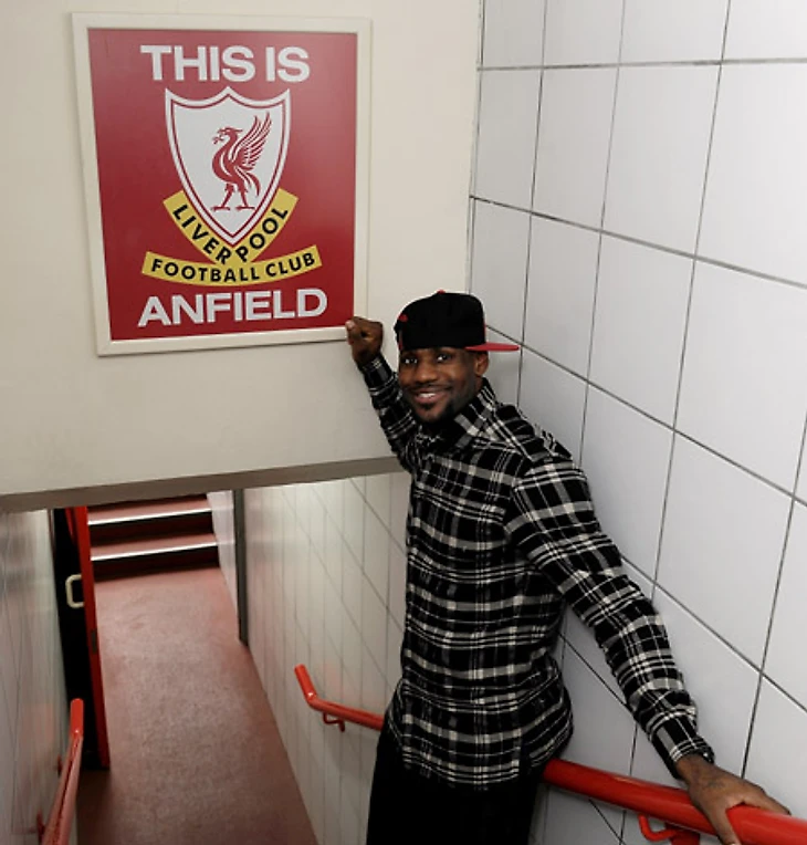 15. Леброн Джеймс с трудом помещается в подтрибунном туннеле «Энфилда». владелец болельщик В 2011-м году баскетболист купил небольшую долю акций «Ливерпуля», чтобы помочь продвижению клуба в США.