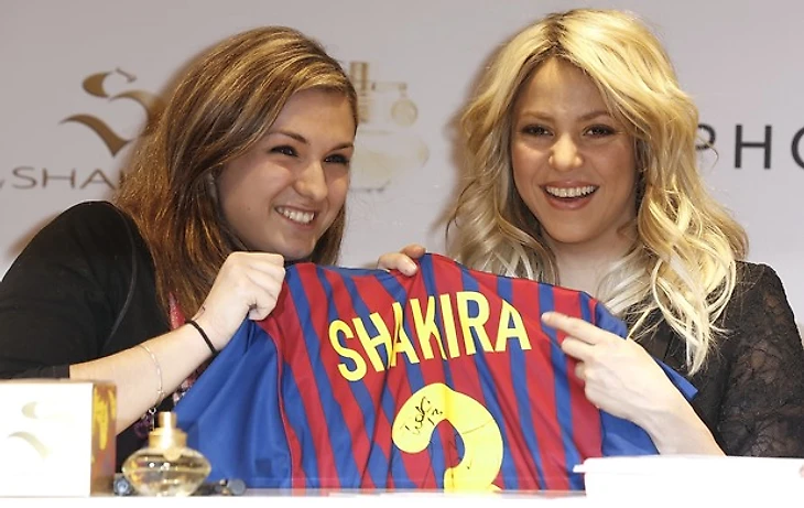 4. Жена Жерара Пике (справа). владелец болельщик Шакире всего лишь подарили футболку клуба.