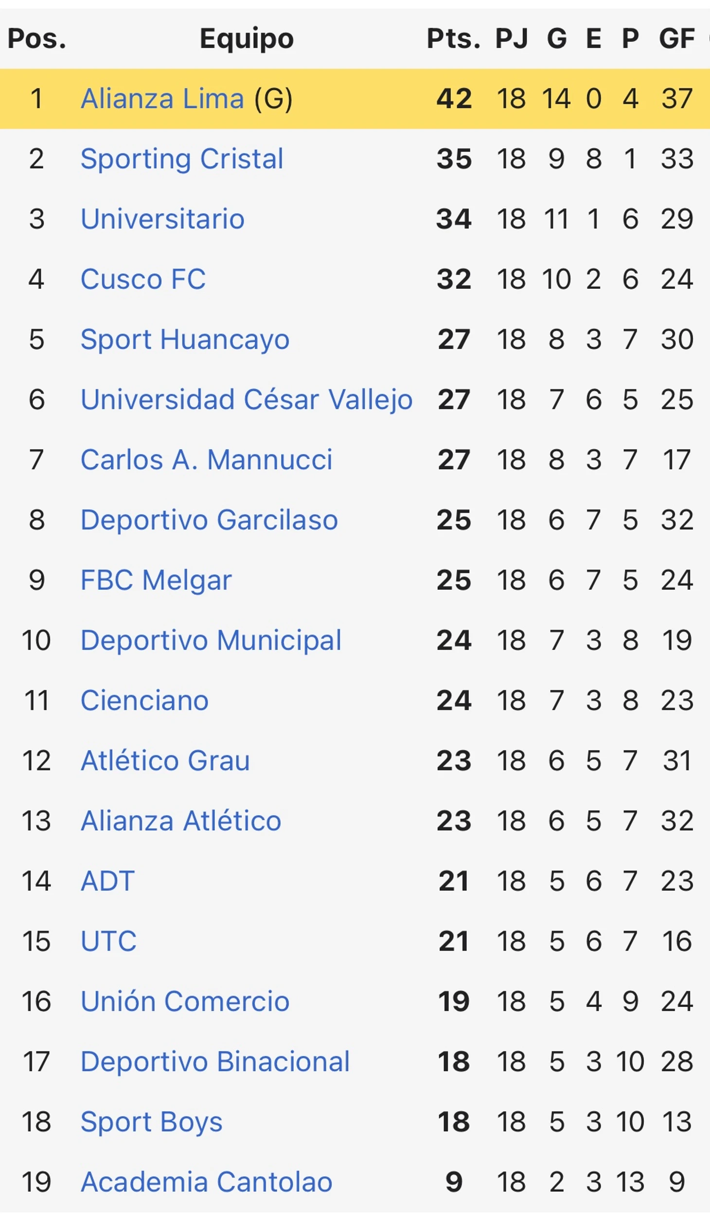 В конце июня начнётся Клаусура. Её победитель выйдет в плей-офф Лиги 1 и будет бороться с Альянсой за звание чемпиона. Если Альянса выиграет Клаусуру, то автоматически станет чемпионом Перу. Нас ждёт интересная борьба и продолжение яркого сезона.