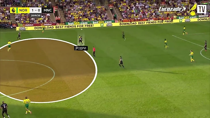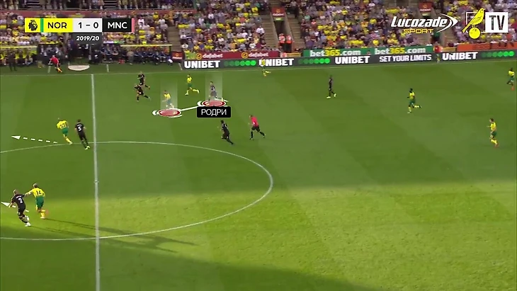 Каждый сезон Родри заканчивал лидером клуба по фолам, но их характер менялся. Сначала Родри всегда выдвигался. В случае провала либо использовал фолы как спасительный и опасный инструмент, либо в качестве зрителя смотрел за развитием скоростной атаки соперника. Вот классика того периода – выдвижение без оглядки на зону, которая остается за спиной. Результат – легкая контратака через центр для соперника: