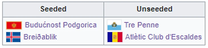 Теперь поговорим о странах,которые задействованы в этом раунде.На сезон 2023-24 52-55 места занимают Исландия (клуб из этой страны будет участвовать 2-й раз),Черногория (первое участие клуба,сама сборная продолжает падение.Спустя 2 сезона,находившись на 50-м месте,Черногория опустилась на 53-е,пропустив вперед Уэльс,Гибралтар и Исландию),и постоянные гости в арьергарде рейтинга-Андорра и Сан Марино (по 6-му участию клуба из этих стран).