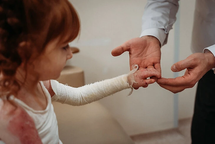 Также Сунесс рассказывал, как именно буллезный эпидермолиз влияет на организм Айлы: «Ее кожа выглядит так, будто она обожжена. Будто на сырое мясо направили раскаленный паяльник».