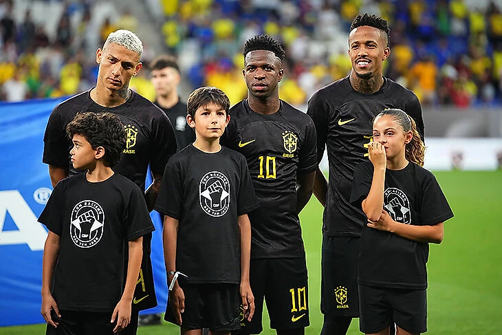 Бразилия впервые сыграла в черном. В знак поддержки Винисиуса