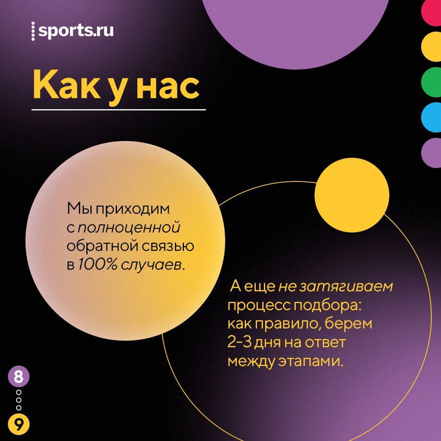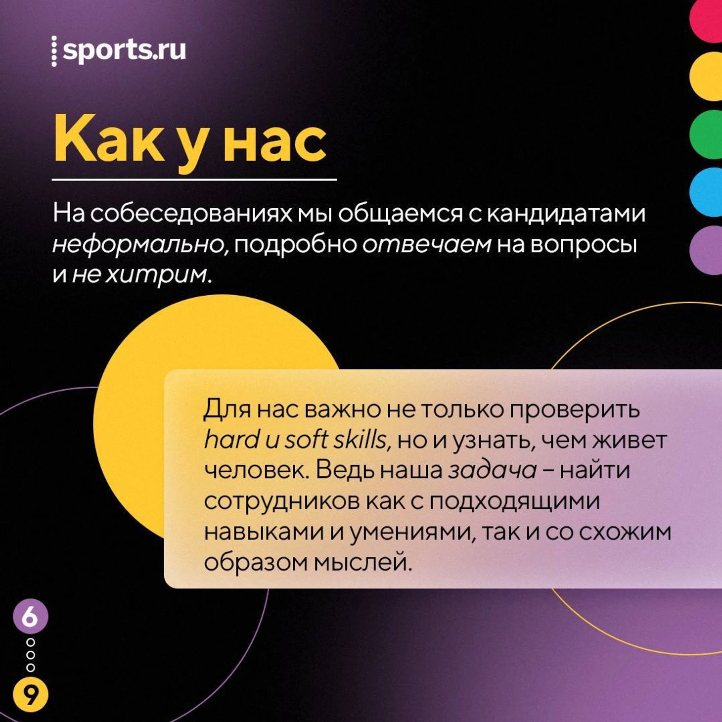 Нашел подходящую для себя позицию? Оставляй отклик в форме под описанием, и в течение нескольких дней мы вернемся с ответом. А если такой вакансии еще нет, присылай резюме на jobs@sports.ru, мы обсудим, как можем быть друг другу полезны 🙂