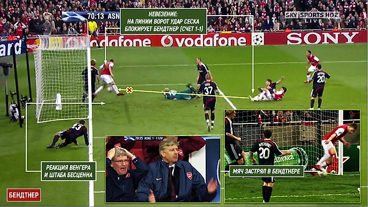 Опасный момент у Фабрегаса, удар, мяч летит в створ. Никлас спасает ворота «Ливерпуля» от неминуемого гола. Мяч застревает (иначе и не скажешь) в Бендтнере. Судья поднимает флажок, офсайд, но вопрос так и не снят с повестки: «Как ты там вообще оказался?!»