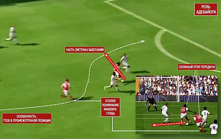 Недостатки могли проявляться и тогда, когда «Арсенал» слишком авантюрно поднимал линию или забывал игроков между линиями, где и зарождались рывки за спину: