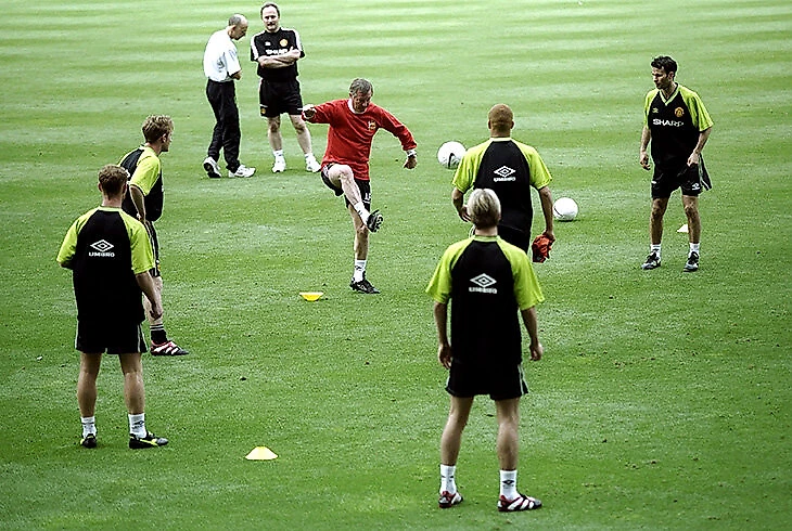 Он взял требл на старте нового тысячелетия, цветного ТВ и медленного интернета. Он швырял бутсу, получал пиццей, запрещал шапки, жевал жвачку, воевал с Моуринью/Венгером/кем-то-еще, а потом поил их вином. Вспомните все крутые рекламы с Руни и Роналду, воротник Кантона, обложки с Бексом, нарезки с навесами и ударами Скоулза. Фергюсона там могло и не быть, но везде чувствовалось его присутствие, его огромная великая тень. Если бы в древних альбомах Panini были бы стикеры с тренерами, Ферги был бы самой ценной наклейкой.