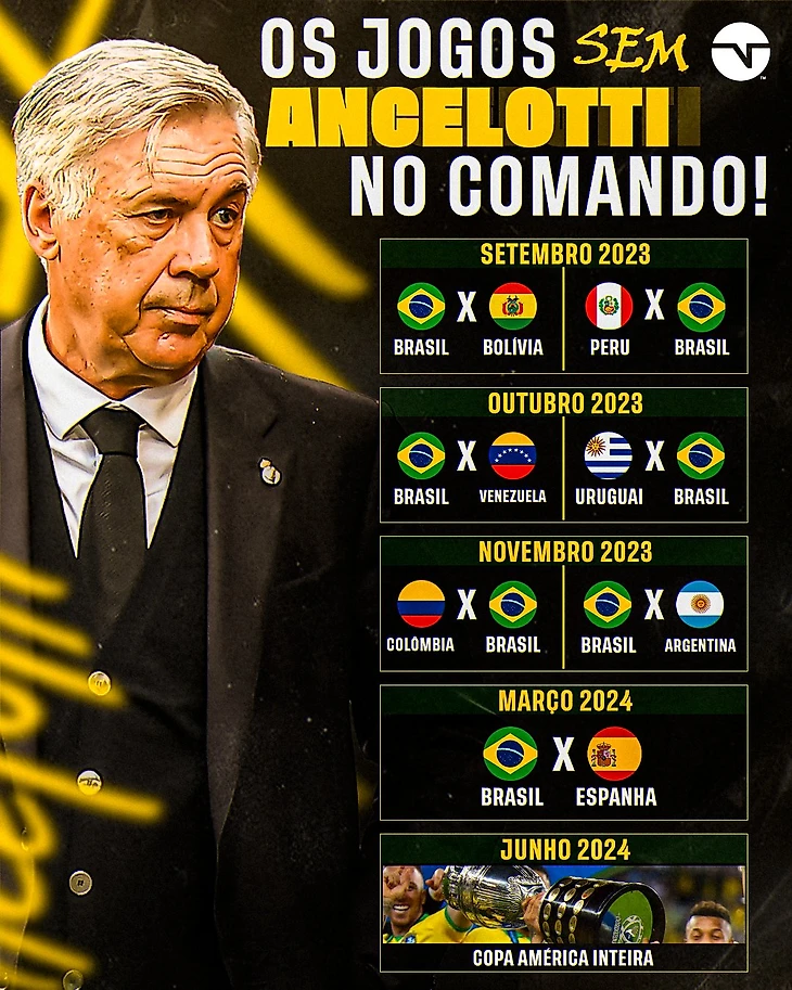 Если Анчелотти возглавит команду в следующем июне, он встретится со своим новым составом только накануне турнира. Валтер Касагранде, бывший бразильский игрок, ставший популярным экспертом, потребовал, чтобы проблема была «решена быстро» , предложив бразильской футбольной ассоциации (CBF) позаимствовать Феррейру у «Палмейраса», когда будет игра со сборной Бразилии. «Хотите дождаться Анчелотти? Подбросьте монету. Она может упасть орлом или решкой», — говорит он. «Пока он не приедет, нам будет стыдно. Нас обгонят многие команды, с которыми мы даже не думали соперничать в прошлом».