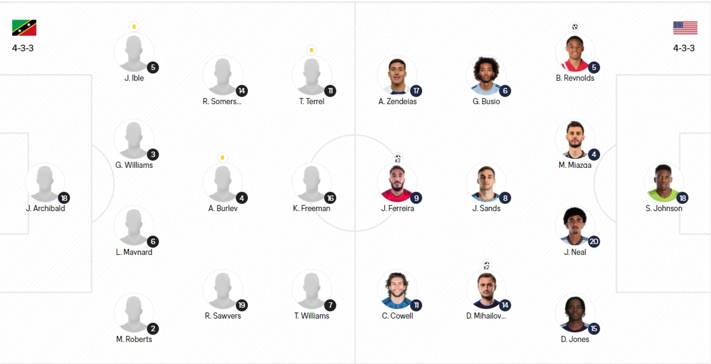 После (условно) неудачной игры против Ямайки, Каллаган перелопатил состав, оставив в старте всего 4 игроков. Мязгу, Сэндса, Сенхедаса и Феррейру.