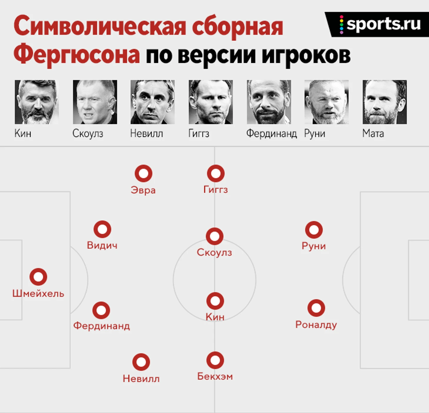 Для визуализации (и, возможно, помощи в выборе) вот типовая команда от экс-футболистов «Юнайтед» – собрали мнения Кина, Скоулза, Невилла, Гиггза, Фердинанда и Маты.