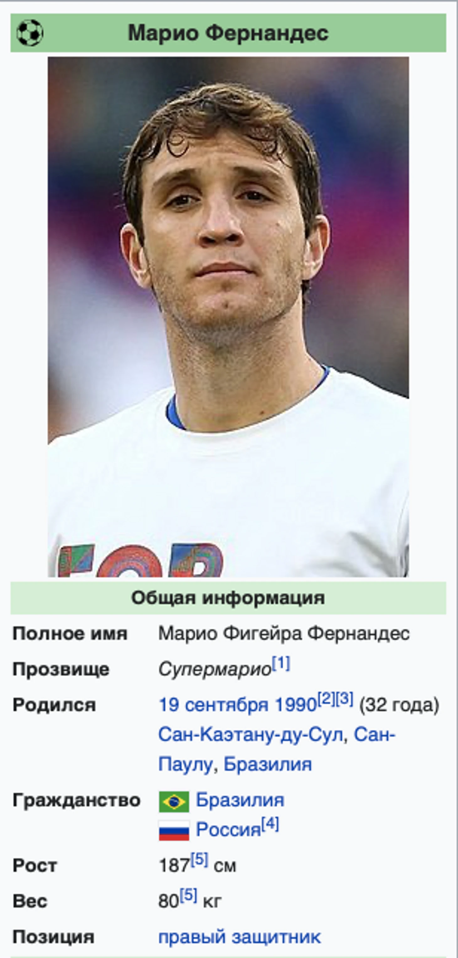 Марио и правда не выглядит толстячком, хотя раньше весил меньше: согласно данным из открытых источников, в период выступлений за ЦСКА Фернандес весил от 77 до 80 кг. Рост футболиста – от 187 до 189 см.