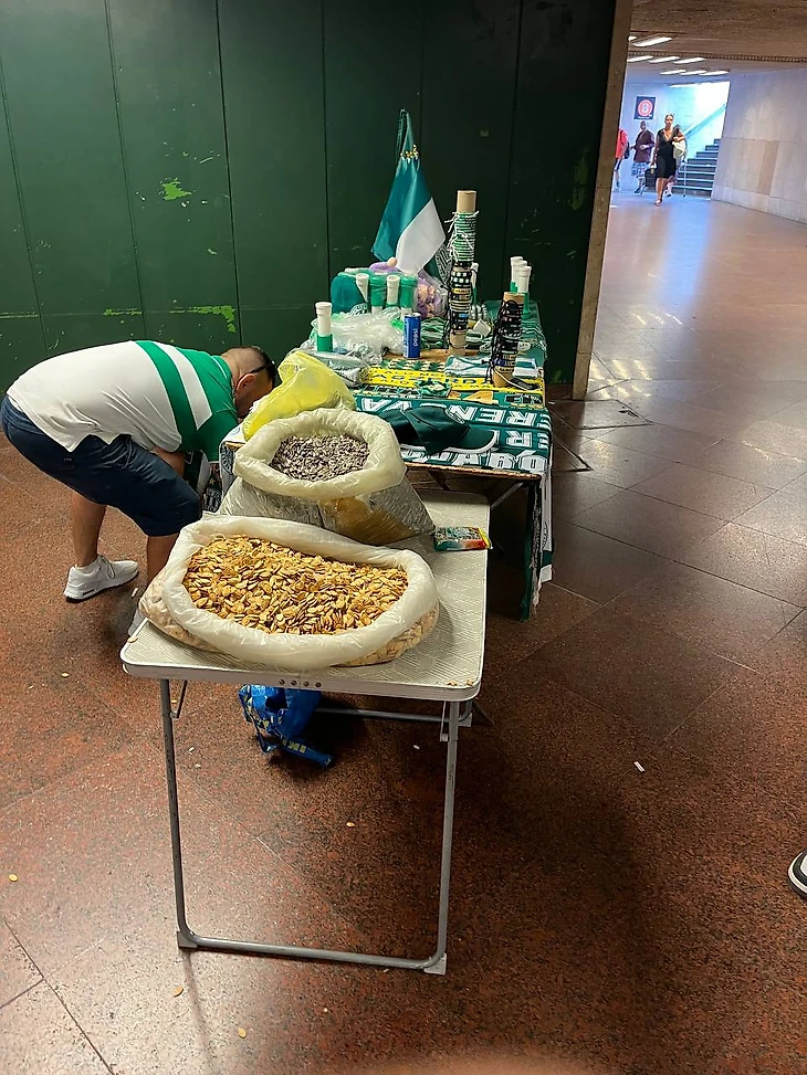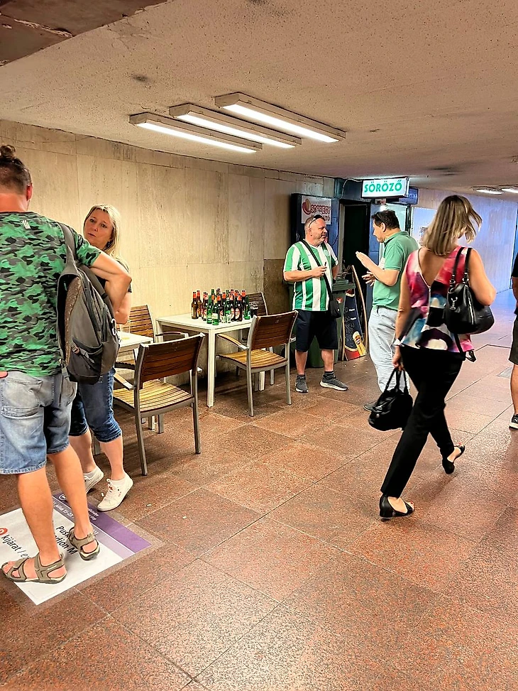В этом же переходе расположились и мужички с раскладными столами, готовые продать вам массу не очень качественной атрибутики и, само собой, семечки. Они – главный снек на всех спортивных мероприятиях в Венгрии. В буфете может не оказаться воды, но семечки точно будут