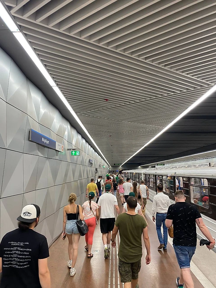 В переходе над станцией уже чувствовались более праздничные вайбы. Тут мужчины у небольшой пивной выставили красоваться на столе солидный запас пустых бутылок, показывающих их настрой на предстоящую игру (и солидную выдержку, чего уж там)