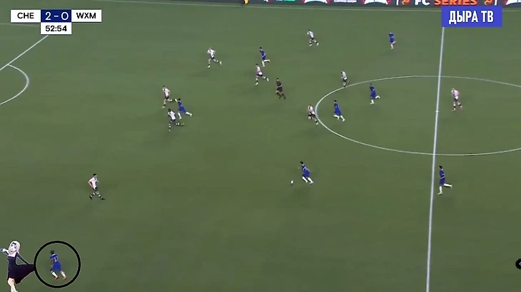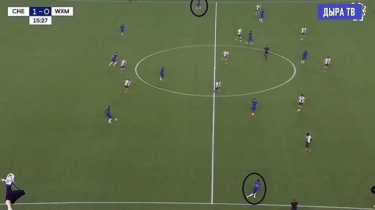 По большей части Челси встречал соперника в центре поля ближе к своей половине, что к слову видно на скриншоте выше, где представлена схема. Такая картина была очень частой.