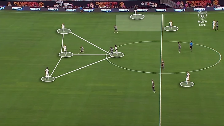За 3 матча против «Милана», «МЮ» и «Барселоны» Карло предложил несколько интересных идей в вопросе розыгрыша мяча (от 4-2 в билдапе против команды Пиоли до 3-1-4 против команды Тен Хага).