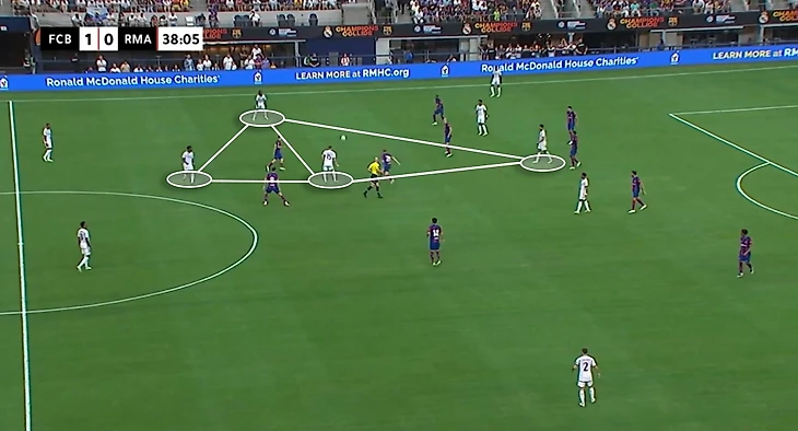 Эти адаптации зависели от системы прессинга соперника, но ключевые принципы Анчелотти сохранялись в любых сценариях, что мы в очередной раз увидели и против команды Хави.