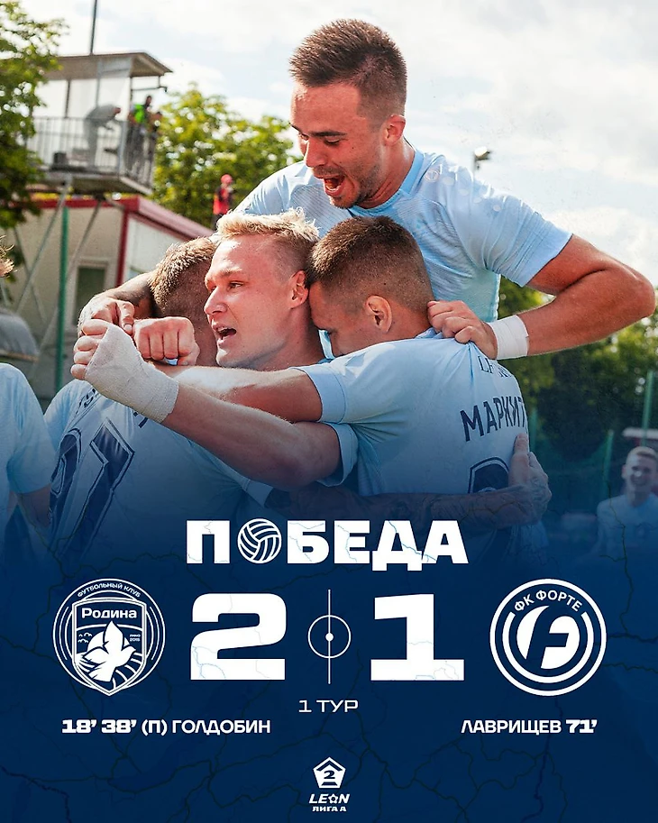 Старт нового сезона Признаюсь честно: матч-открытие с «Форте» я не смотрел ввиду игры у основной команды в тот же день. Голдобин оформил дубль и, по ощущениям, готов в этом году рвать и метать во Второй лиге. Матч закончился победой 2:1.